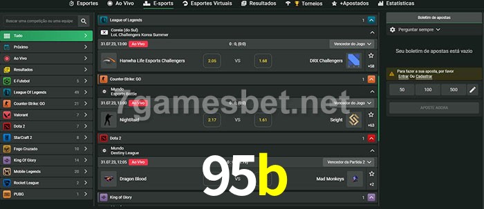 O 95b oferece uma grande seleção de opções de apostas em e-sports com probabilidades competitivas